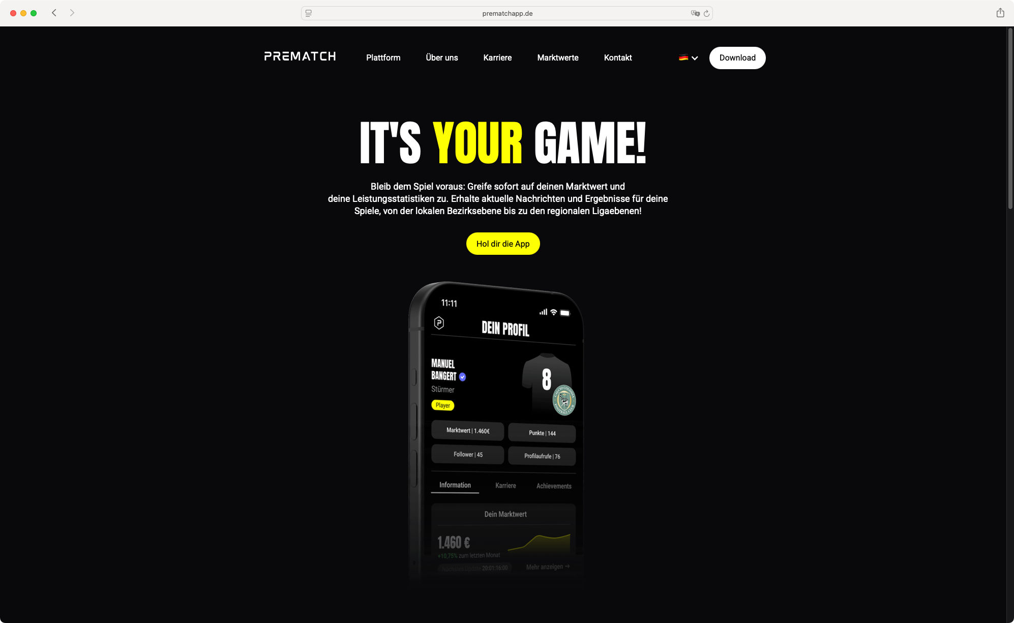 Prematch owns the leading data and AI-driven platform for amateur football players. Digitizing and gamifying the non-professional football world and building a vibrant network for football.